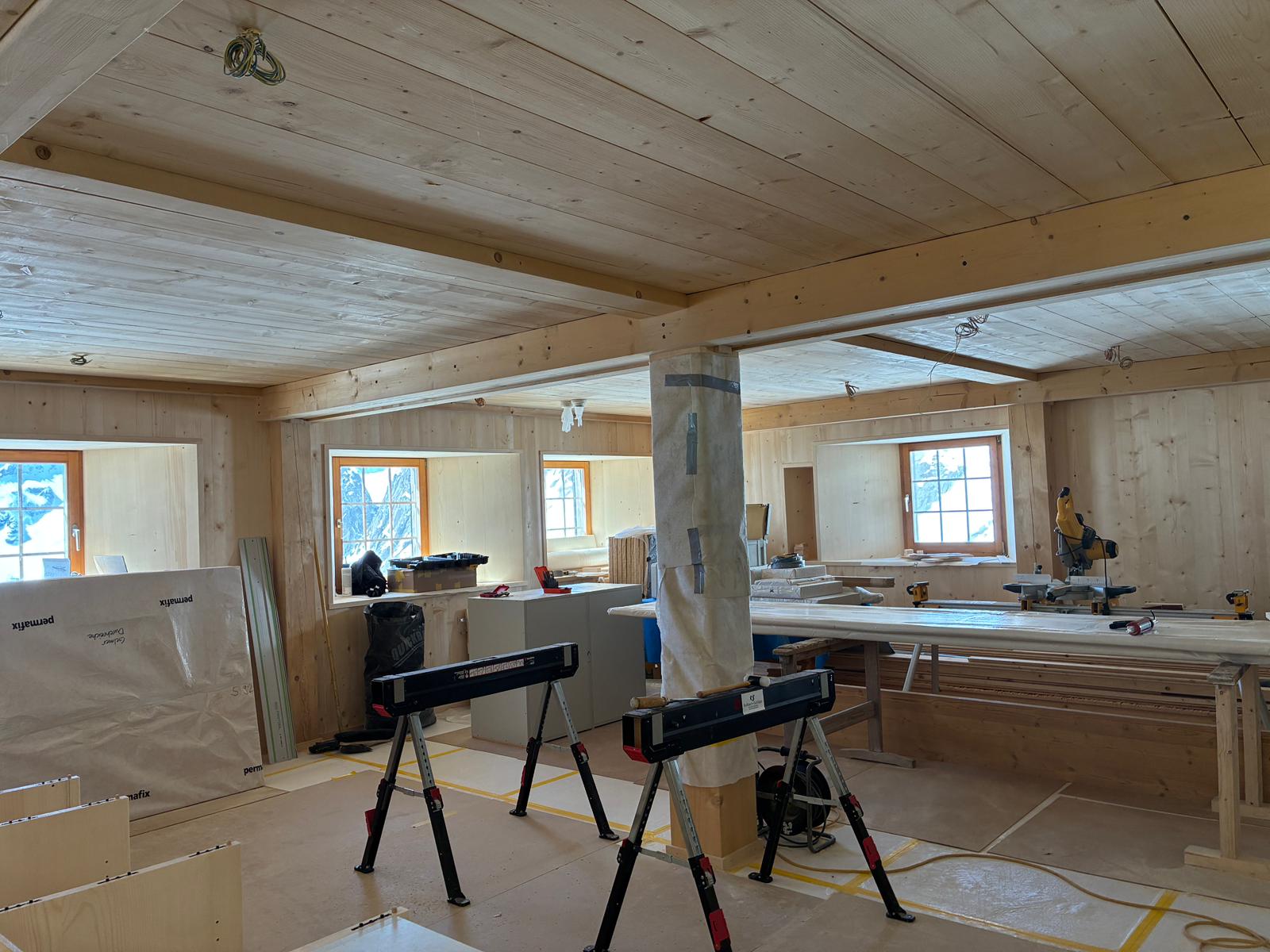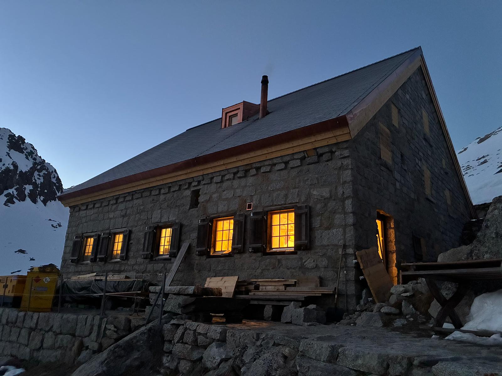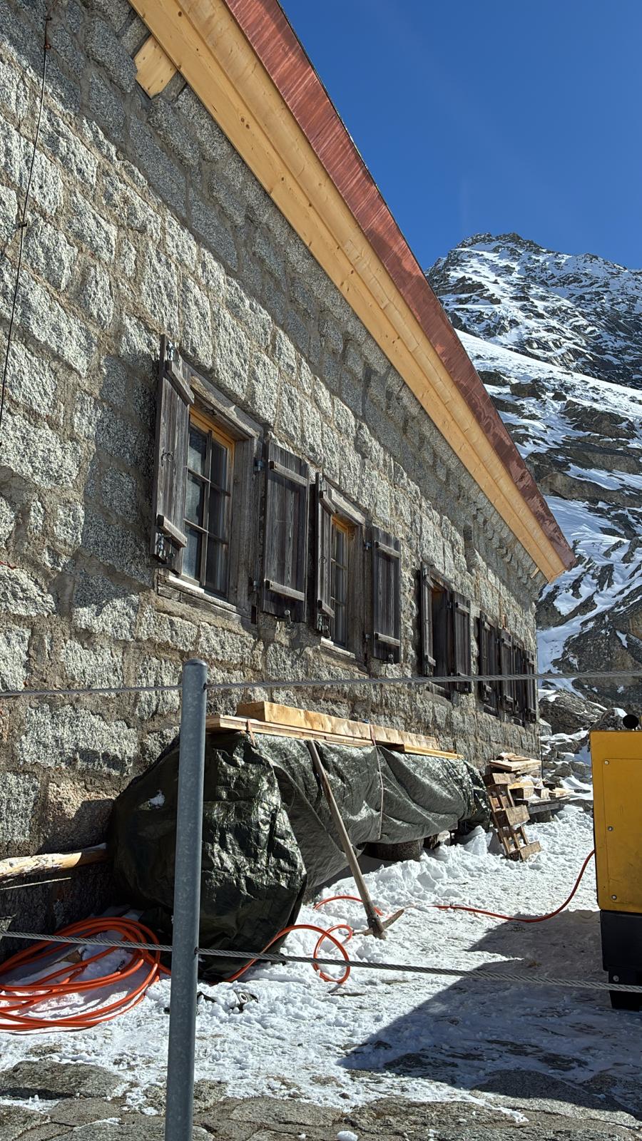 Am 17. März wurden die Arbeiten in der Gelmerhütte wieder aufgenommen. Ziel ist es, den Innenausbau bis Anfang Mai fertigzustellen. Quelle 1 liefert bereits ein wenig Wasser, weshalb Schneeschmelzen kaum mehr notwendig ist und die Wassertoiletten in Betrieb genommen werden konnten.